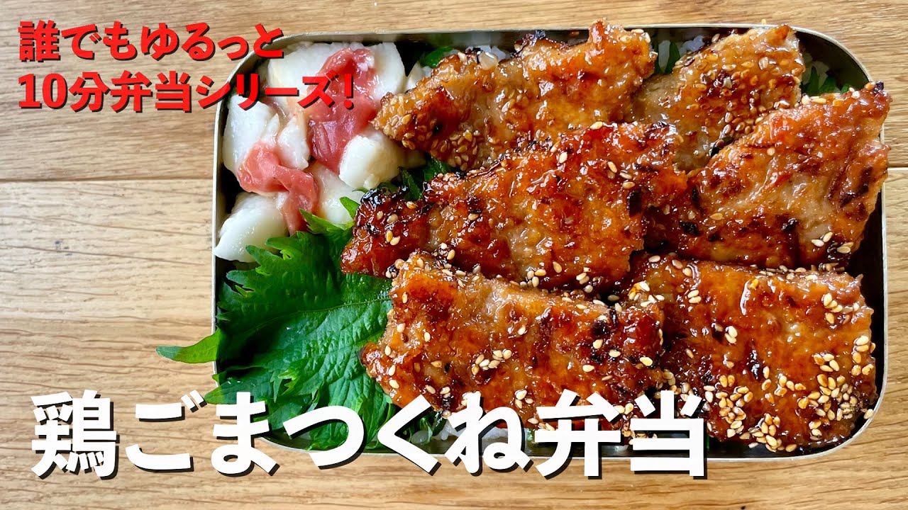 祝シリーズ化!超簡単だれでもゆるっと10分弁当!鶏ごまつくね弁当with長いもの梅和えの作り方 10分ノーカット。