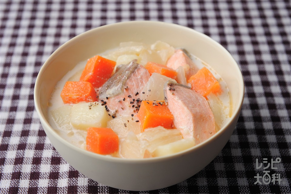 鮭と野菜のミルク味噌スープ│「健康な食」をデザインする ビオサポレシピ。