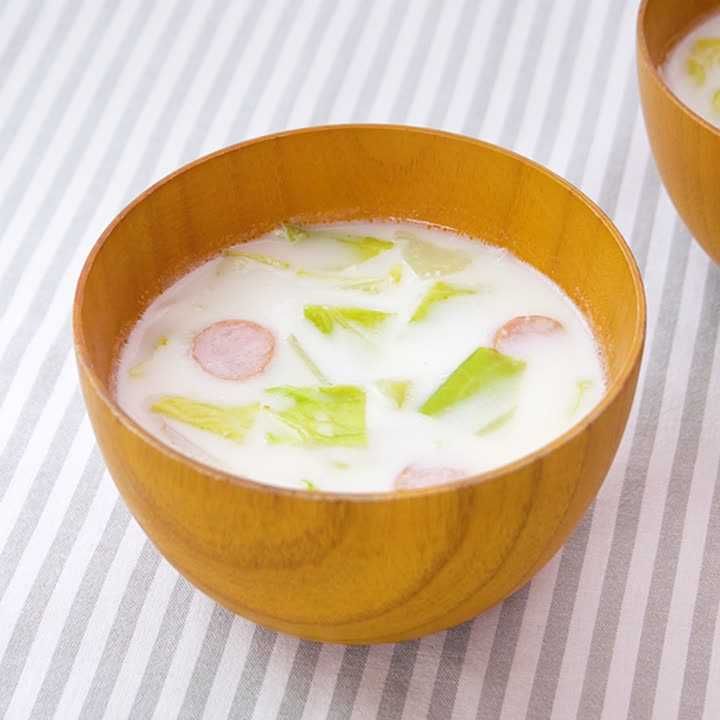 まろやかな味わい♪ 春キャベツとソーセージのミルクみそ汁。