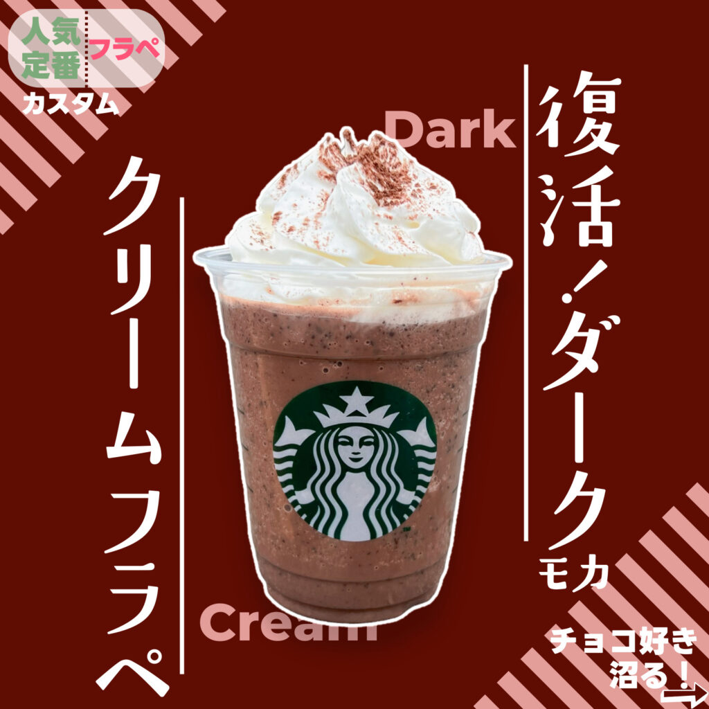 スタバカスタム ショック!あの人気メニュー「ダークモカチップクリームフラペチーノ」が終了してた!ほぼ完全再現するカスタムの注文方法とはまめ@毎日 スタバカスタム。