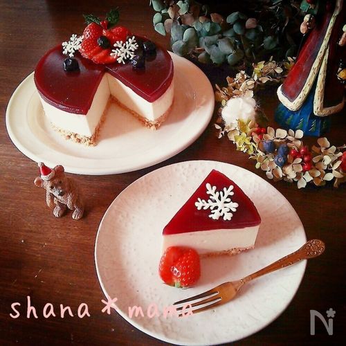 基本のレアチーズケーキで♪濃厚リッチなクリスマス♪。