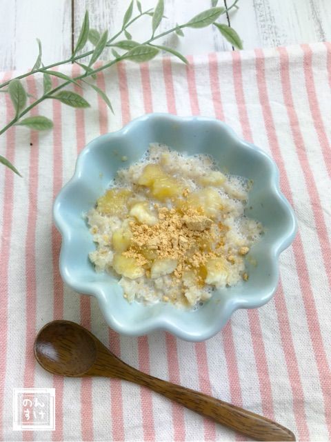 レシピ モグモグ期〜、バナナ豆乳のきな粉がけオートミール : のんすけ*おちびのおいしいくらし〜離乳食・幼児食。