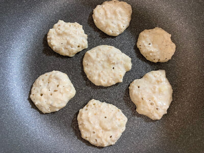 アレンジレシピ バナナ入りオートミールのパンケーキ。 牛乳・砂糖なし。