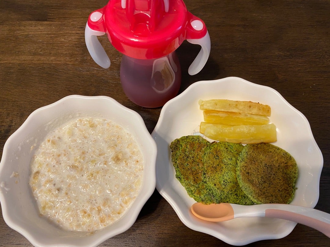 11m7d 離乳食後期① 〜バナナのオートミール粥・おやき~見習い管理栄養士のできごと レシピブログ。