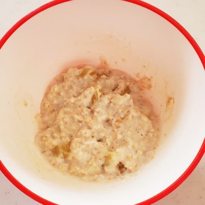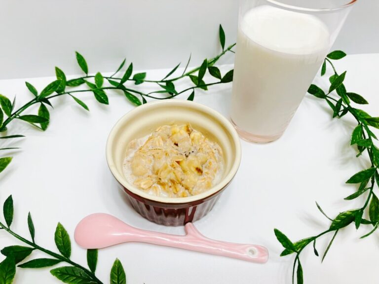 レンジですぐ完成!鉄分補給も!オートミールバナナ粥。