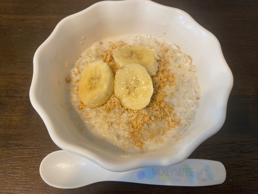 毎日食べている離乳食 きなこバナナミルクオートミール 離乳食中期そらちんブログズボラで便利が大好き人間の子育て奮闘体験談。