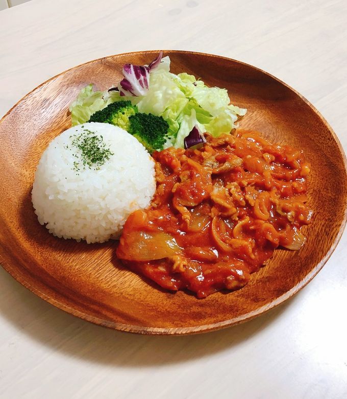 家計にやさしい節約レシピ♪ 豚こまとトマトのハヤシライス。