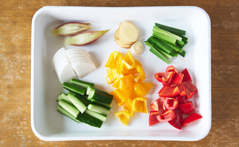はじめての漬物 第1話:米のとぎ汁で簡単手作り。お腹も整う夏野菜の「水キムチ」 - 北欧、暮らしの道具店。