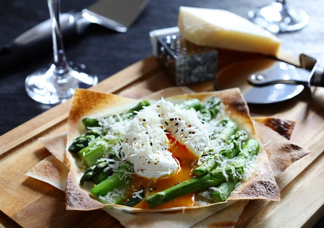 余った春巻きの皮を簡単アレンジ!トースターで超お手軽「アスパラと卵のビスマルク風ピザ」michill byGMO ミチル。