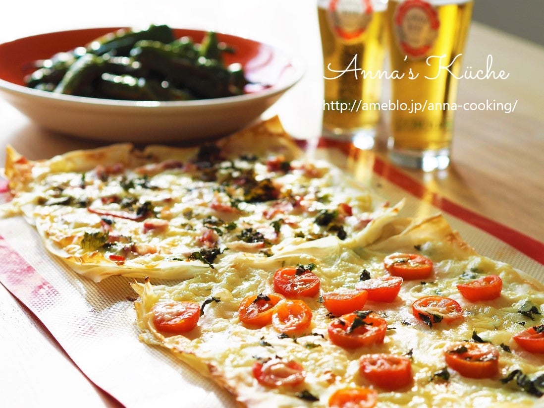 余った春巻きの皮で!クリスピーPIZZA : candy&sarry&・2。