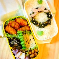 青菜は短めにしてべんとうのすき間に♪小松菜ののり、ゆかりあえサンキュ。