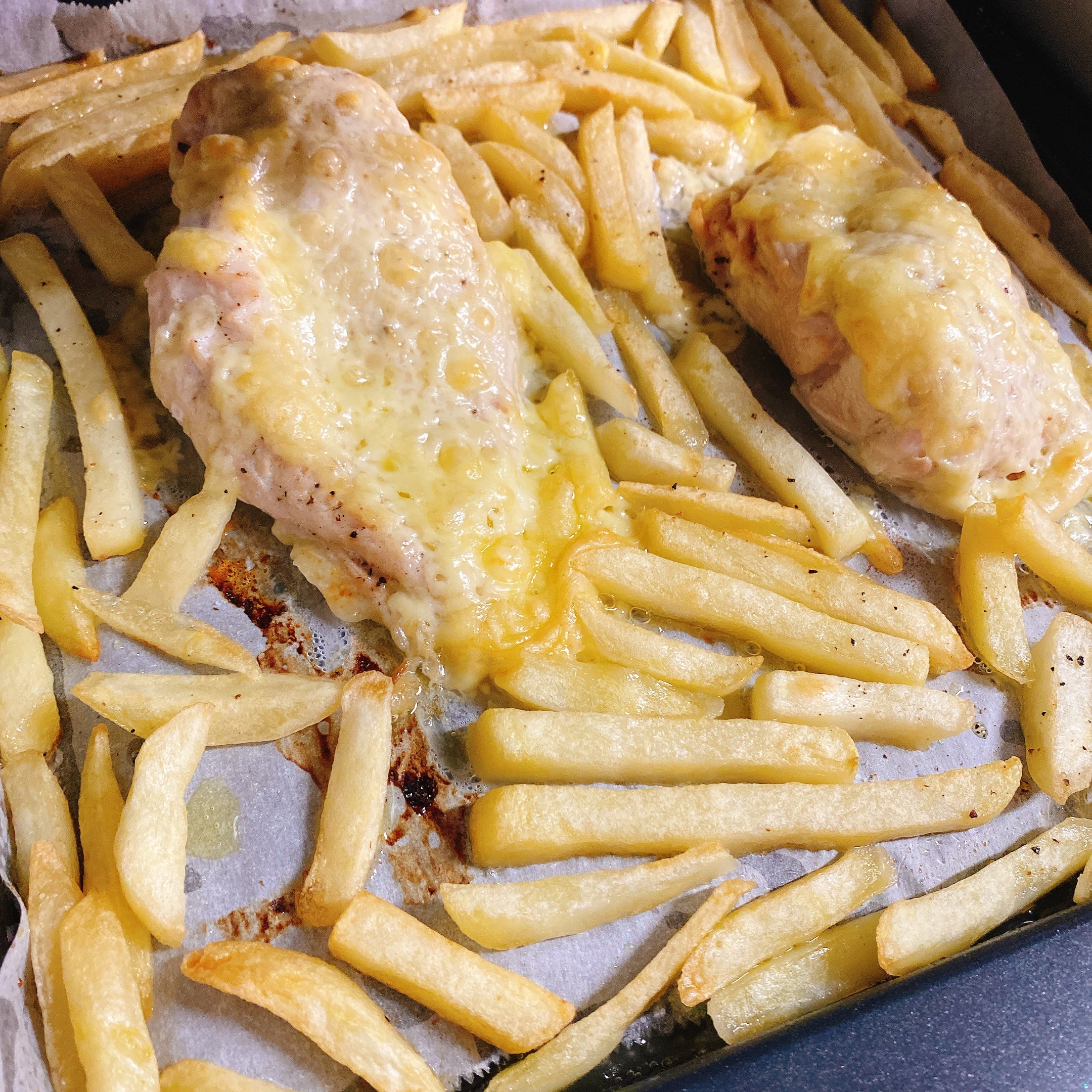フライパンひとつ♪『チキンとポテトのとろ〜り♡チーズ焼き』。