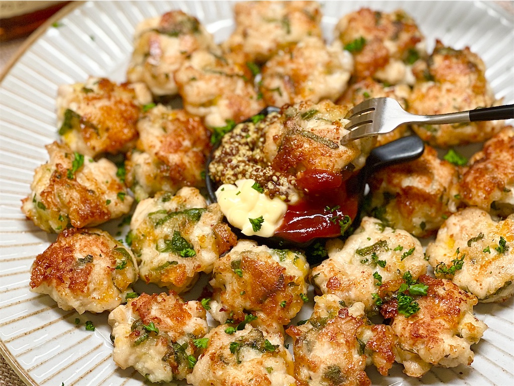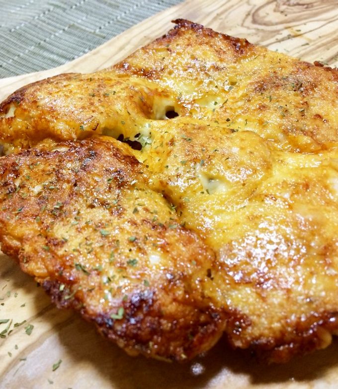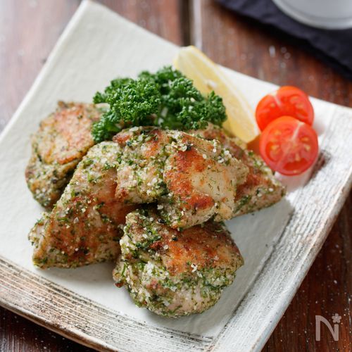 「鶏むね粉チーズ焼き」レシピ!しっとり鶏むね肉ににんにくの風味とチーズの香ばしさ。