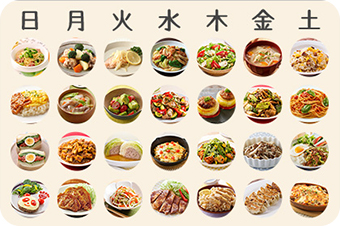 1週間献立 しっかり野菜も取れる栄養バランスのいい夜ご飯献立。