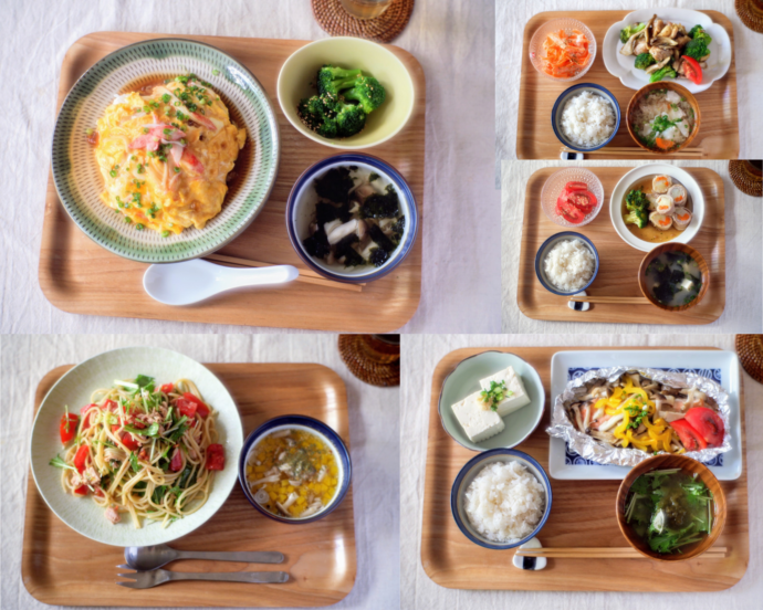 栄養士が考えるバランスのよい献立、3日分1日目の献立 今泉久美さん。