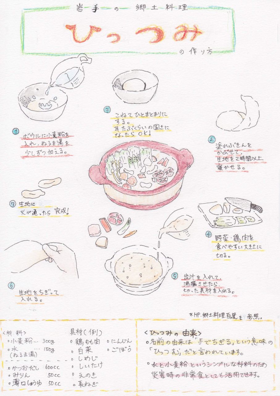 岩手の郷土料理「ひっつみ」: 三陸宮古復興市場 レシピ集。