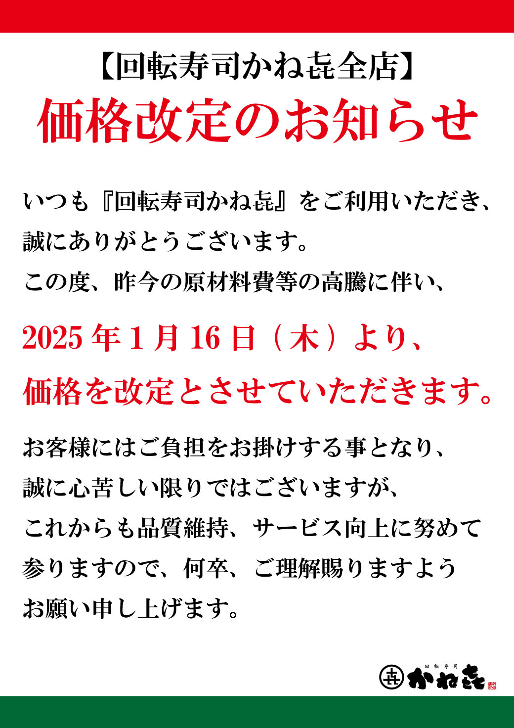一部店舗の価格改定のお知らせ 7 5 水 ~ニュース一覧株式会社あきんどスシロ。