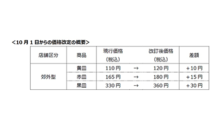 スシロー 10月1日、一皿税込110円を120円に値上げ流通ニュース。