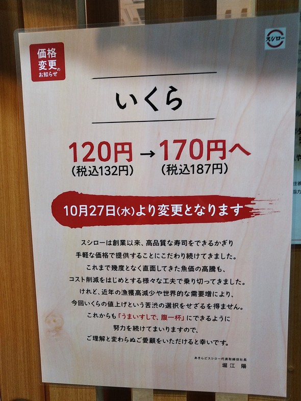スシロー、10月1日以降値上げ 郊外型120円からに 一部店舗区分の見直しも - BCN+R。