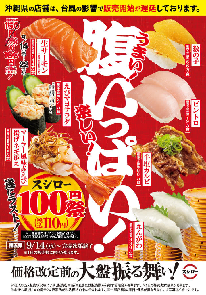 うるま市 スシロー「価格改定前の大盤振る舞い! スシロー100円 税込110円 祭 第五弾 」開催中!号外NET 沖縄市・うるま市。