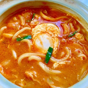 ピリ辛激ウマ!熱々で召し上がれ♡スンドゥブ風豚キムチチゲ。