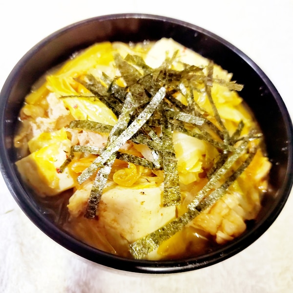包丁なし キムチで簡単ヘルシー!お豆腐チゲ風スープ。