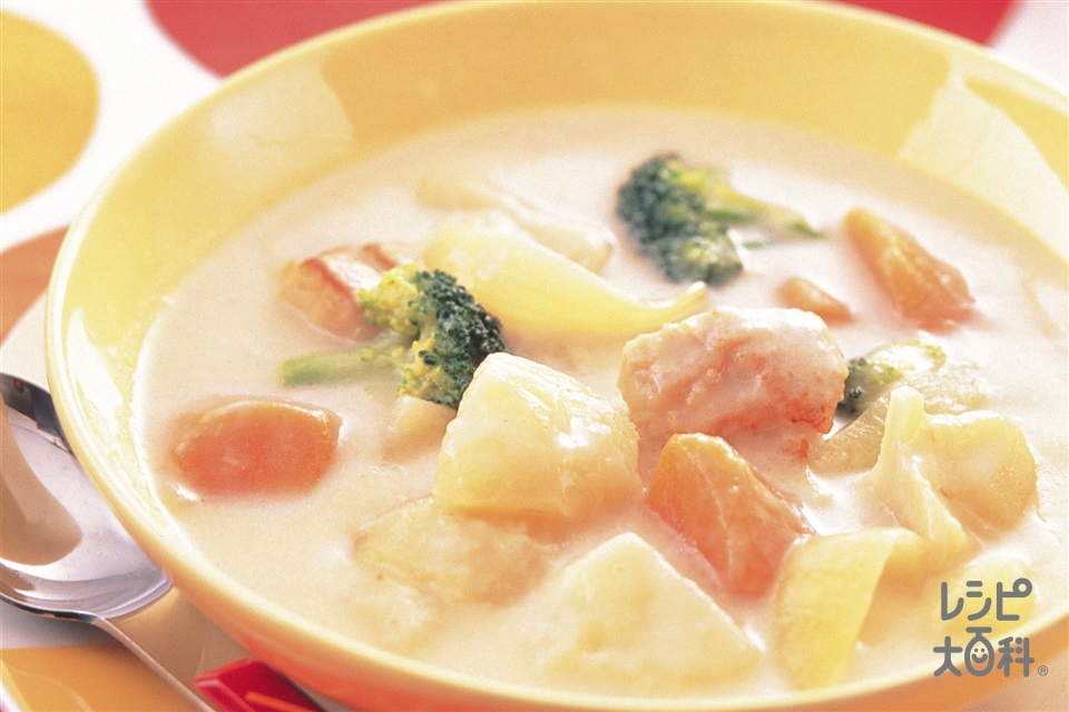 鶏肉とじゃがいものシチューの献立 主食:ひたパン、副菜:フライド大根 コンソメ風味献立・メニュー 味の素パーク たべる楽しさを、もっと。