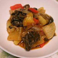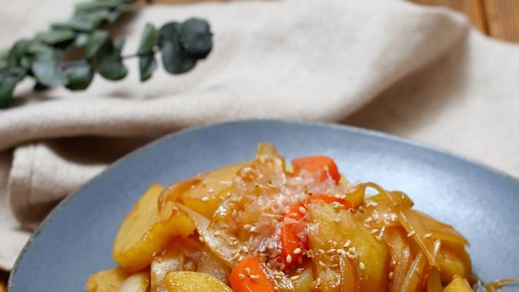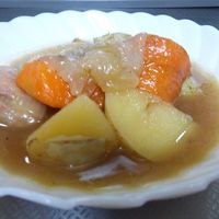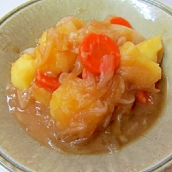 じゃがいもと大根と人参とたまねぎのみそケチャップ煮。