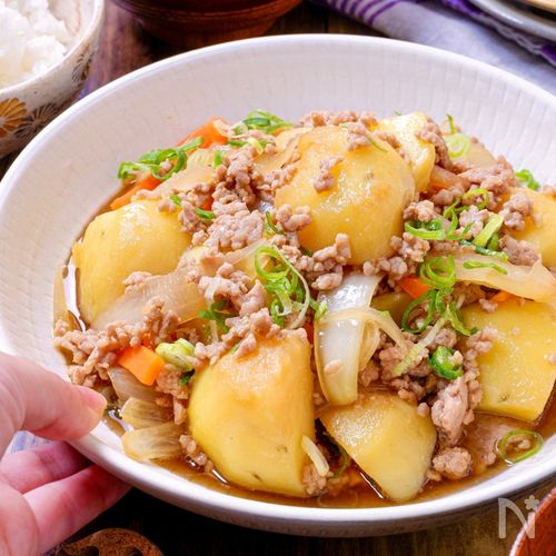 肉じゃが風♡じゃがいものそぼろ煮 野菜室の常連さんで♡。