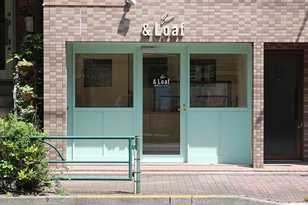 パステルグリーン扉とロゴが映えるパン屋さん 東京都のカフェ・パン・ケーキのデザイン施工事例店舗設計施工.com。