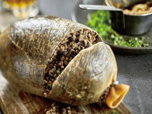 世界羊食紀行「ハギス」は羊の内臓を羊の胃袋に詰めて茹でたスコットランドの伝統料理。