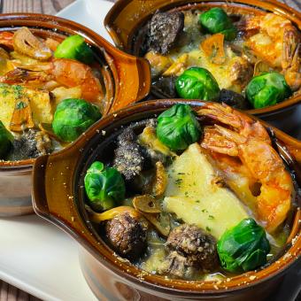 ワインに合う! 海老と芽キャベツのガーリックバターソテ。