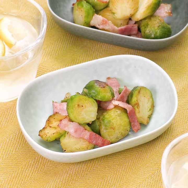 ささっと簡単! 芽キャベツとベーコンのガーリック炒め。