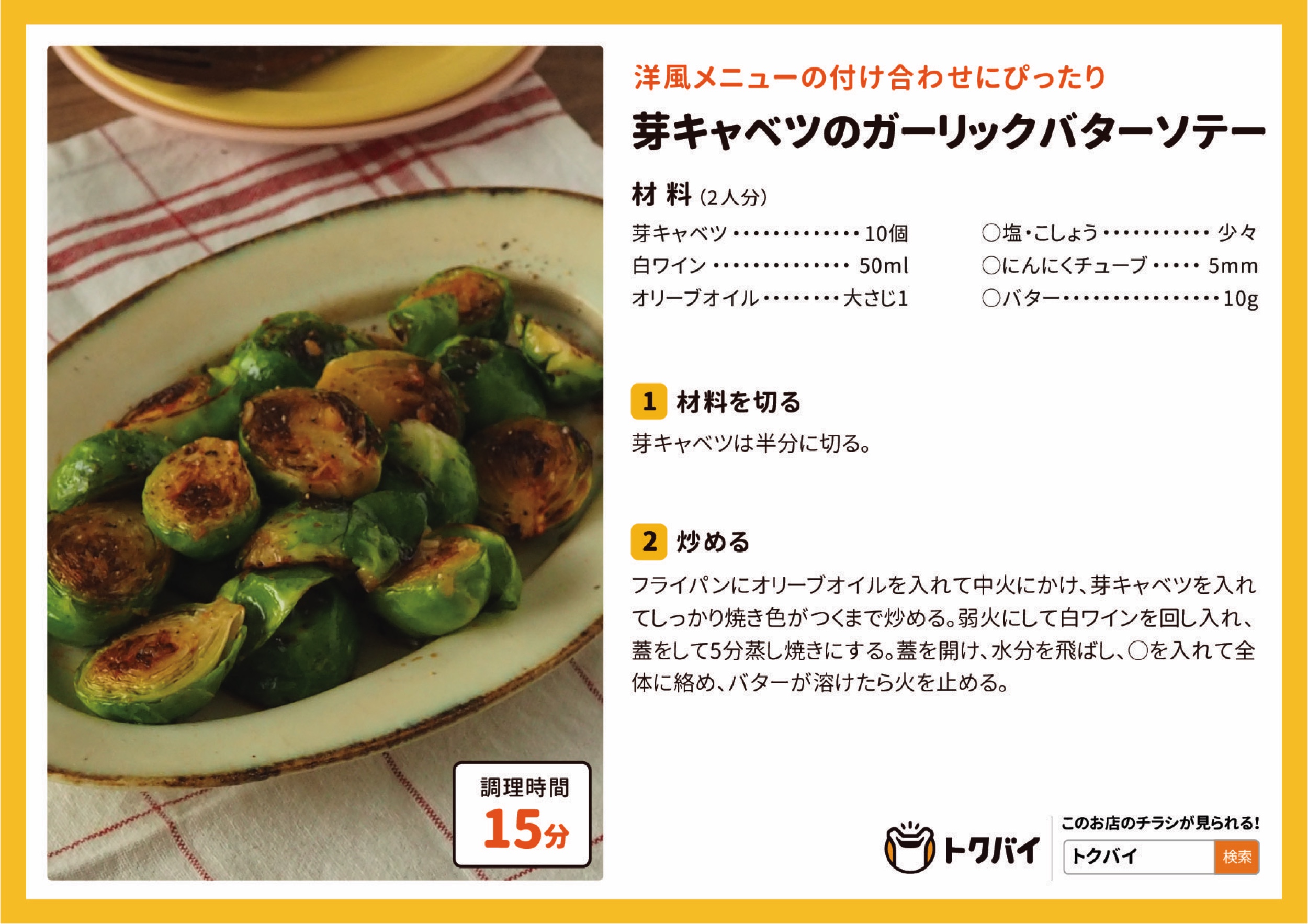 芽キャベツのガーリックバターソテーのレシピトクバイ。