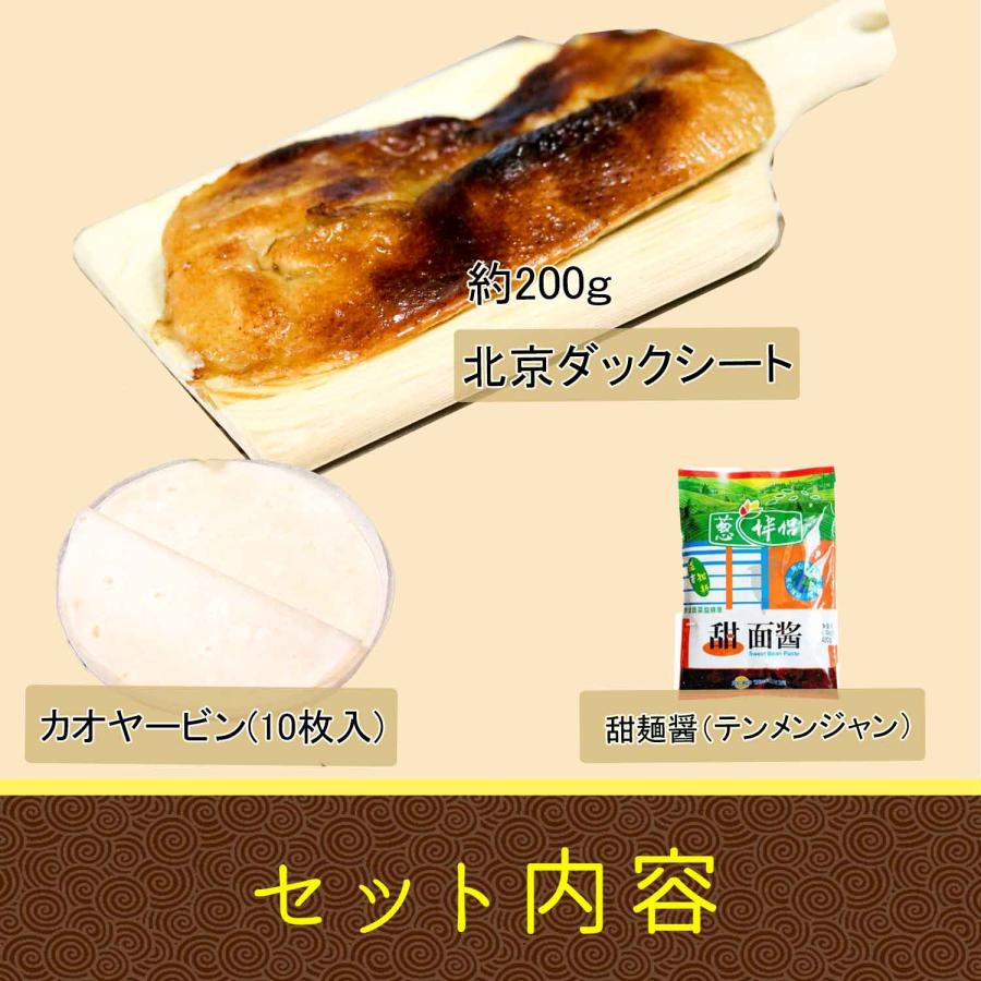 北京ダックセット北京ダックシート+ カオヤービン +甜麺醤 3点セット1食2〜3人前 骨なし 鴨肉 かも お誕生日 母の日 父の日 ギフトお中元 パーティ。