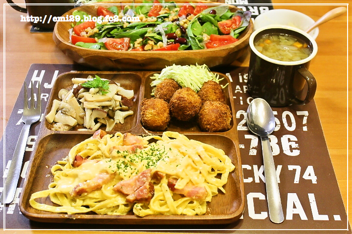 カルボナーラ生ハム添えとおかずの夕飯献立│夕飯献立ブログ - Hungry.jp。
