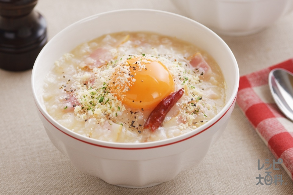 HOTカルボナーラがゆの献立 副菜:白菜のコンソメバター和え、汁物:鶏だんごのおかずスープ 献立・メニュー 味の素パーク たべる楽しさを、もっと。