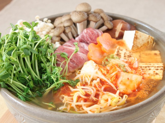 子大豆もやし芽ぐみのキムチ鍋サラダコスモの おいしい発芽野菜レシピ。