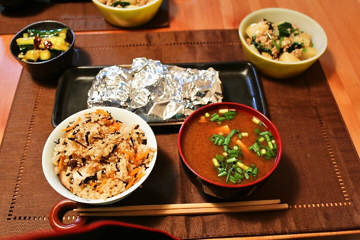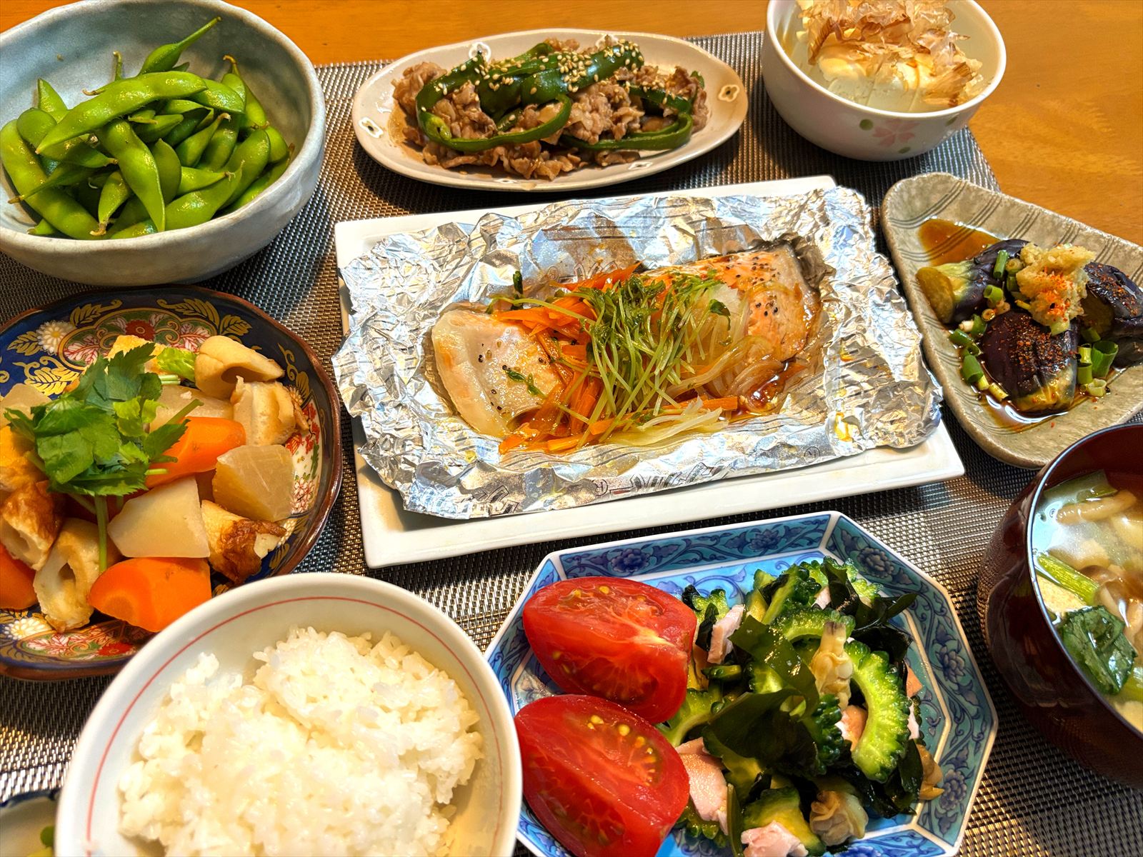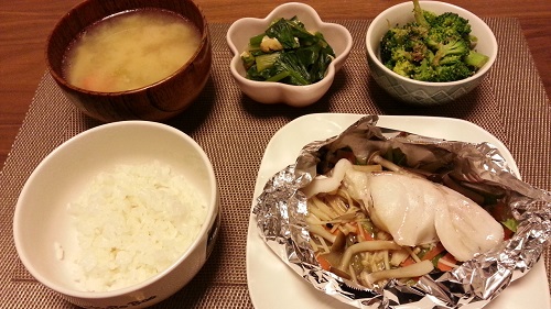 昨日の晩ご飯は鮭のホイル焼き☆和風の献立一・日・半・歩。