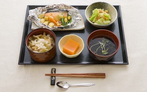 夕食 鮭のホイル焼きの献立米穀安定供給確保支援機構:米ネット。