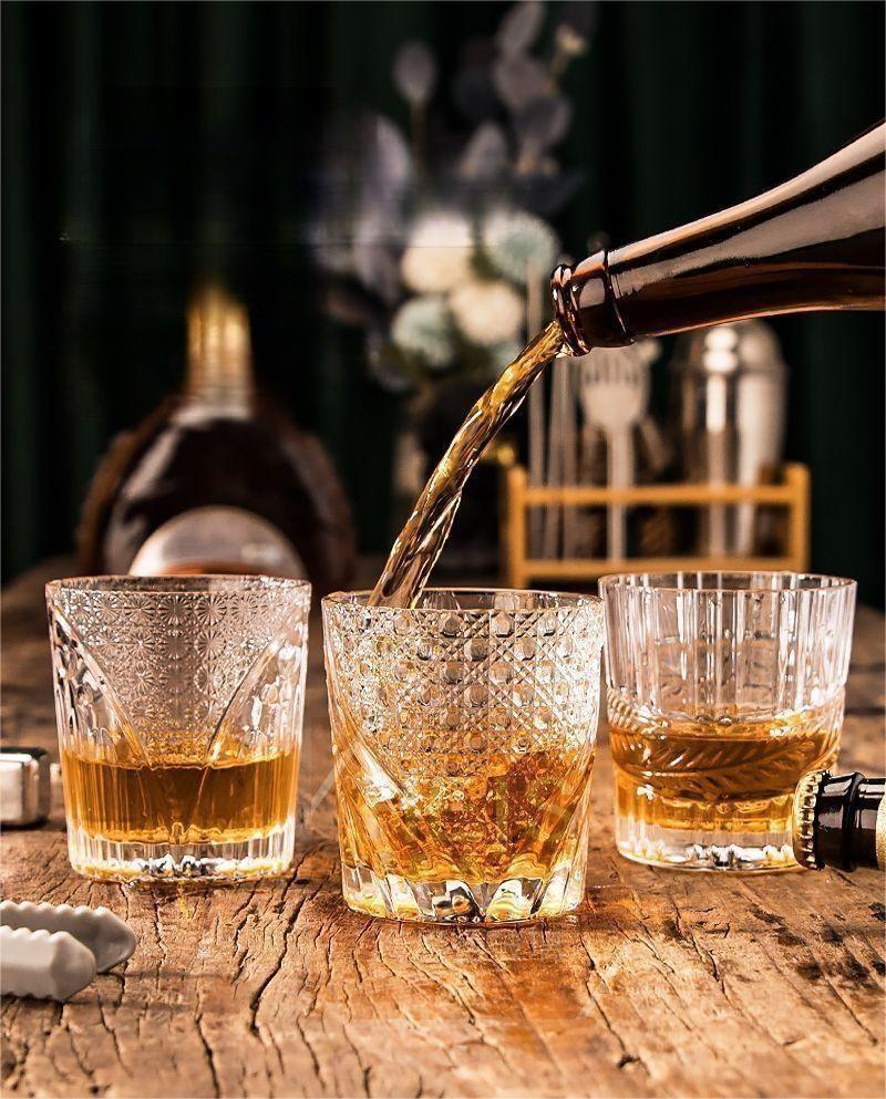 回転式クリスタルウイスキーグラス 5 オンス 3 PCS 、バーボン、スコッチウィスキー、カクテル、コニャック ストリップラティス不規則ウィスキーカップ用 - 中国 ウイスキーグラス、飲料ガラス、回転ガラス、ガラス、食器、ガラス器具、グラスウェア、グラス。