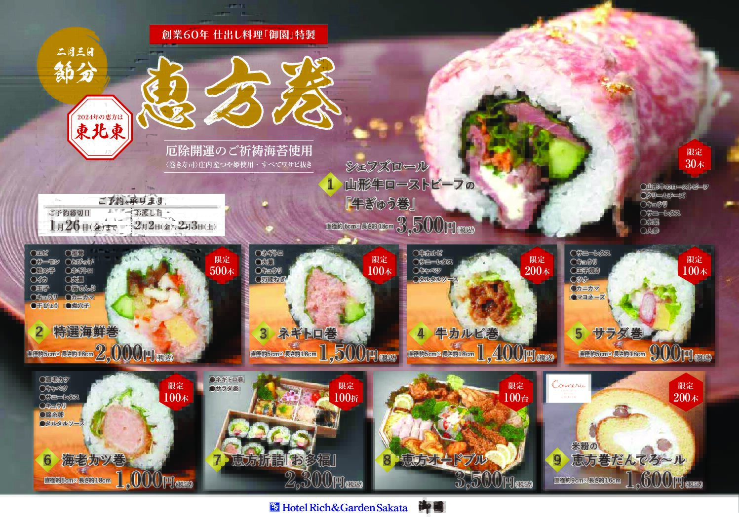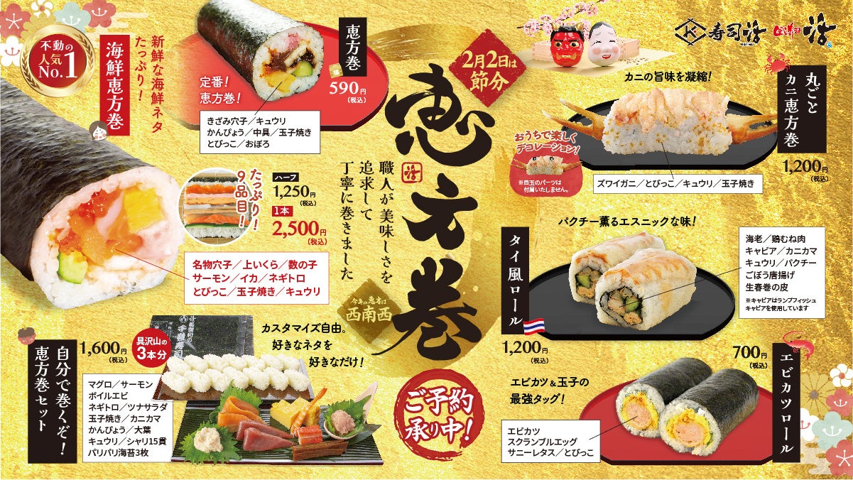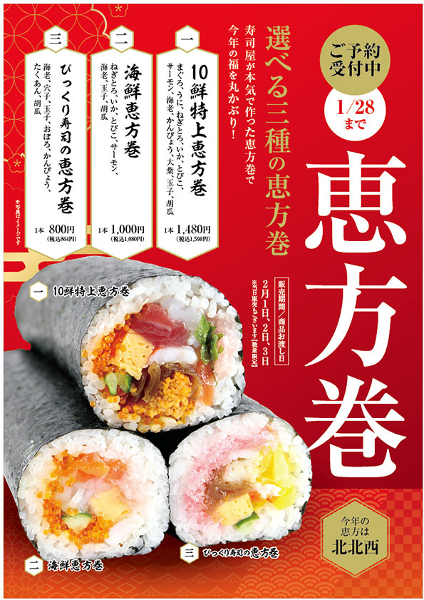 2025年 恵方巻のご予約について新着情報回転寿司 根室花まる町のすし家 四季花まる。