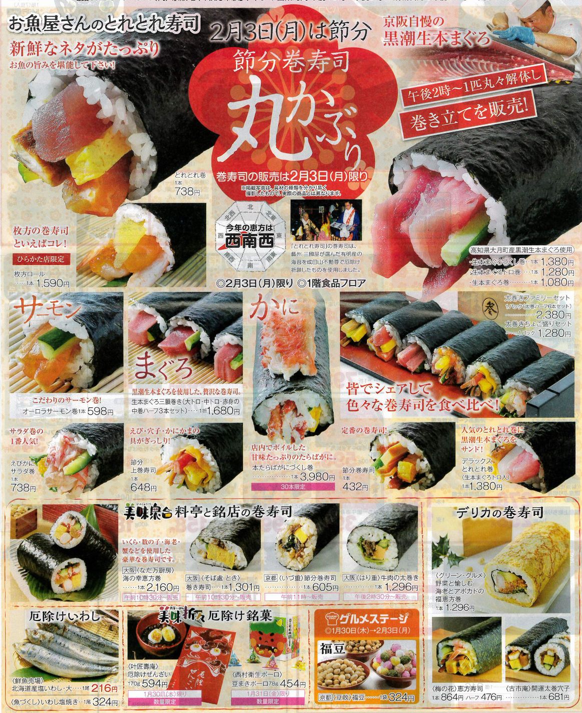 2月2日 火 ・3日 水 、”恵方巻き”を販売します。 1月27日 水 から店頭でご予約承り中。TAU -ひろしまブランドショップ。