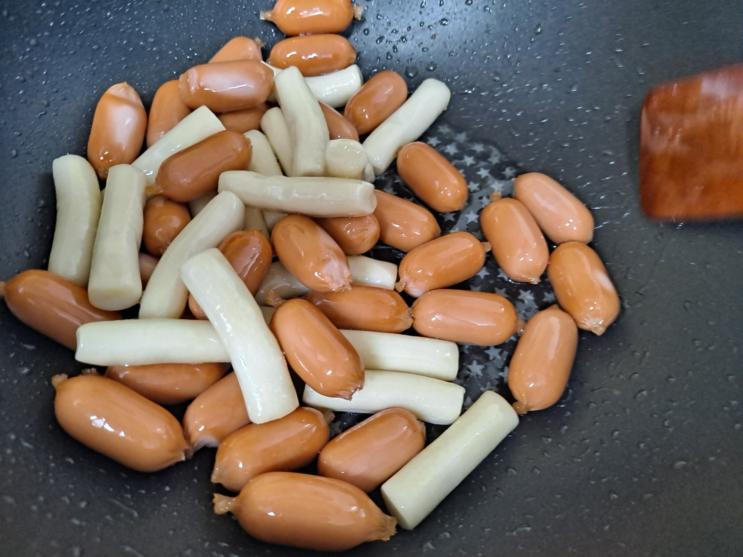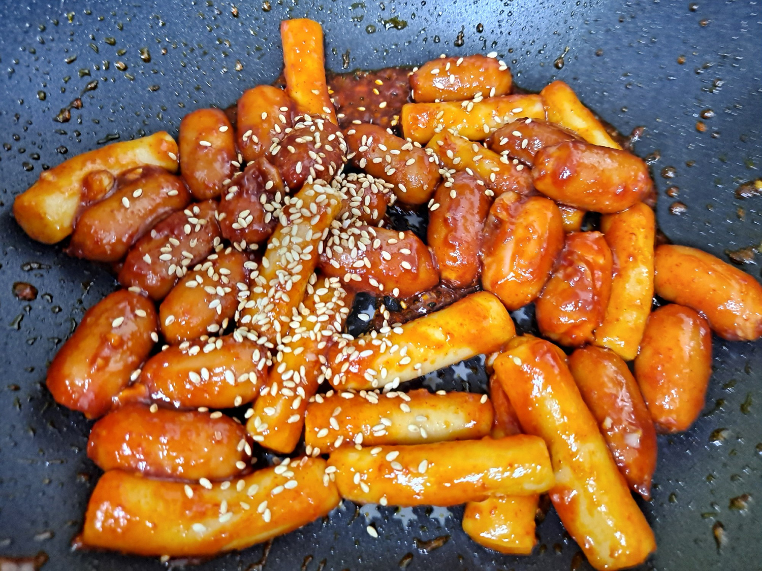 ワンパンでソーセージトッポギ風普通の食べ方に飽きた人は絶対に試して欲しい! パンチの効いたお餅消費レシピをぜひ!材料お餅 150g 3つソーセージ6本 ごま油大さじ1 焼き肉のタレ 大さじ1 ケチャップ大さじ1 砂糖大さじ1 コチュジャンorラー油お好みで辛いのが苦手な人や小さなお子様はなくてOK※きざみねぎ ※白ごま作り方①お餅を1cm幅にカット。
