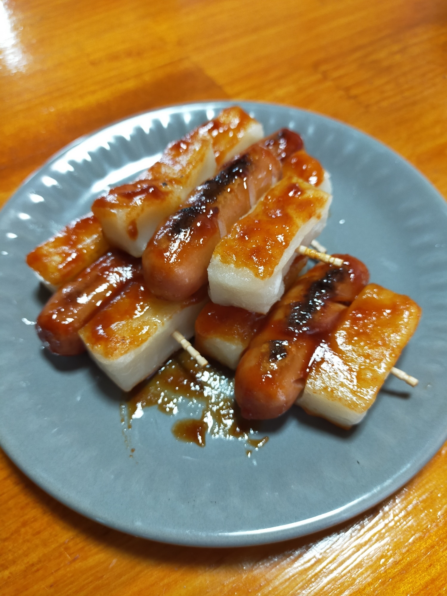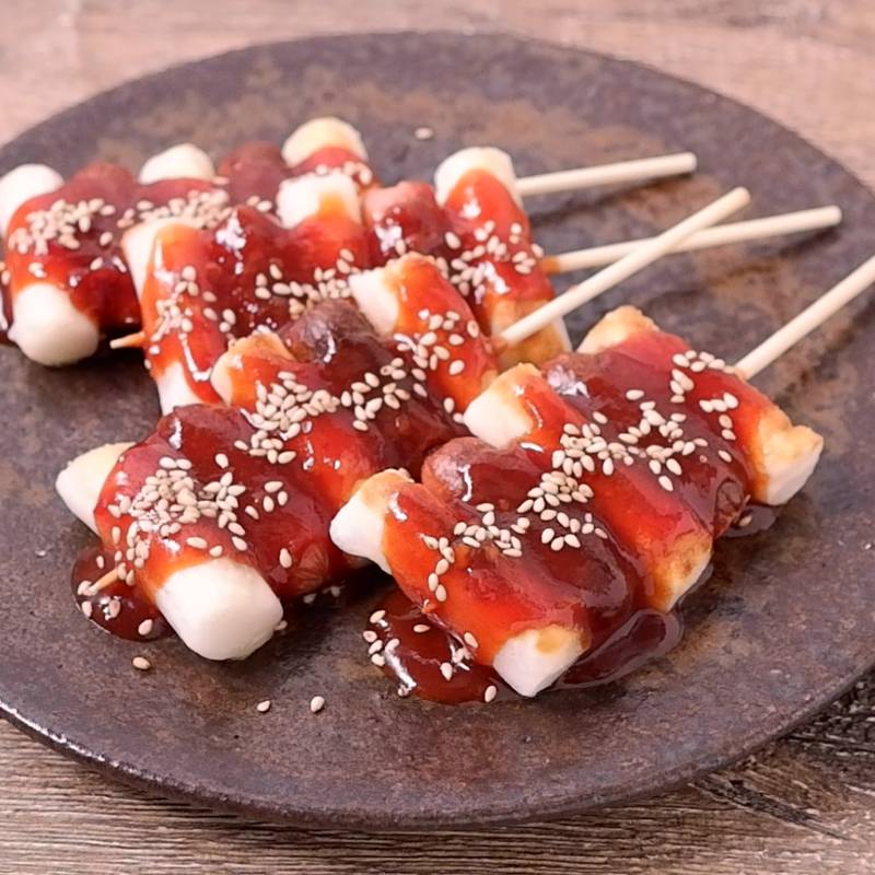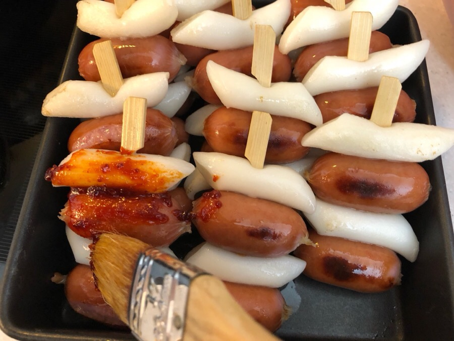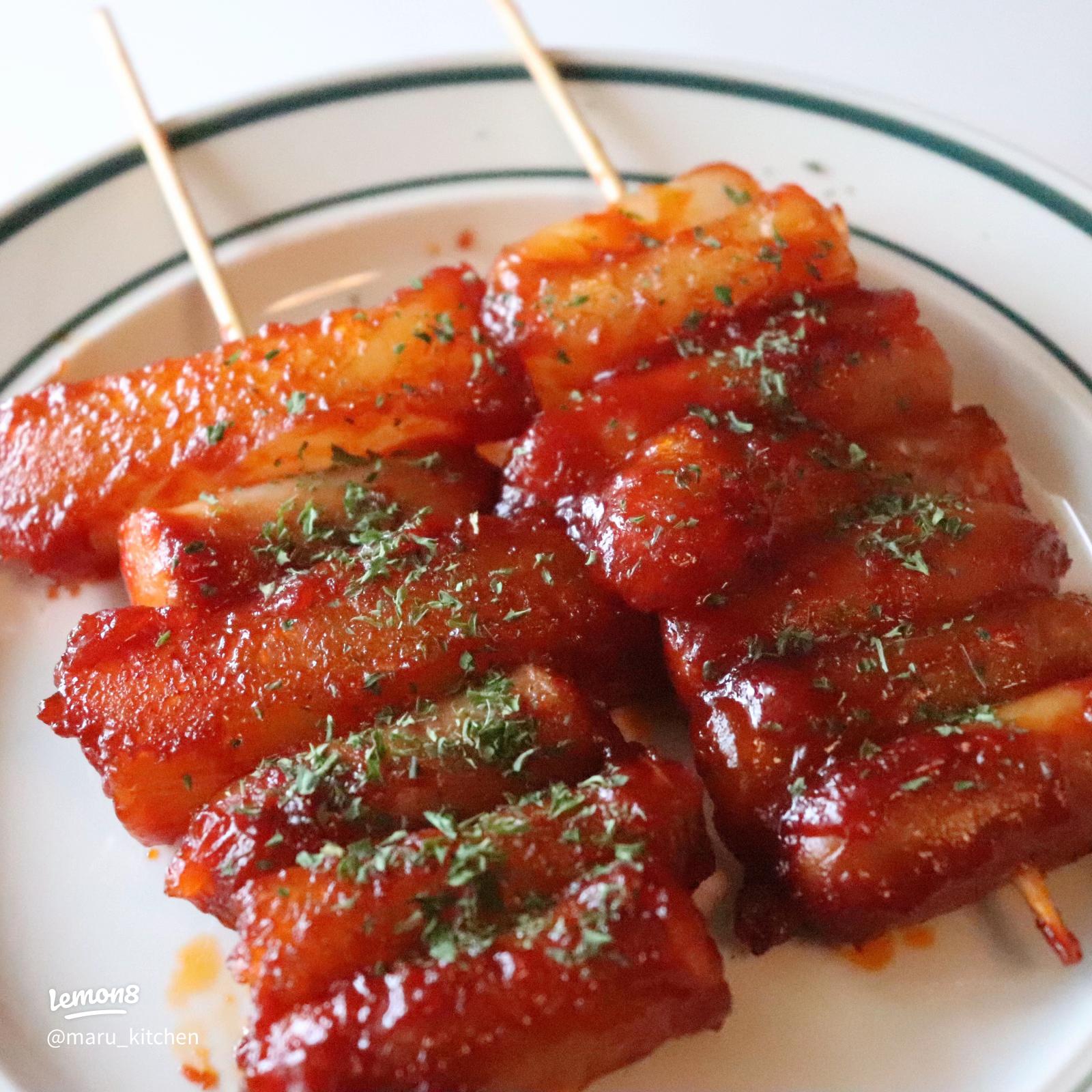 韓国料理レシピ, 韓国屋台の人気おやつ『ソトクソトク』, 「ソ」は、ソーセージ, 「トック」は、お餅を意味するそうです♪,甘辛いヤンニョムをかけていただきます😊, おやつにもおつまみにもぴったり!, ▶︎皮なしのミニウィンナーを使うのがおすすめです,・, 『ソトクソトク 소떡소떡 』,材料串4本分 , ◻︎トッポギ用餅 トック ・12本,。