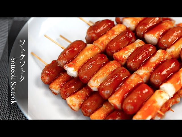 韓国料理レシピ 韓国屋台の人気おやつ『ソトクソトク』 「ソ」は、ソーセージ 「トック」は、お餅を意味するそうです♪甘辛いヤンニョムをかけていただきます😊 おやつにもおつまみにもぴったり! ▶︎皮なしのミニウィンナーを使うのがおすすめです。