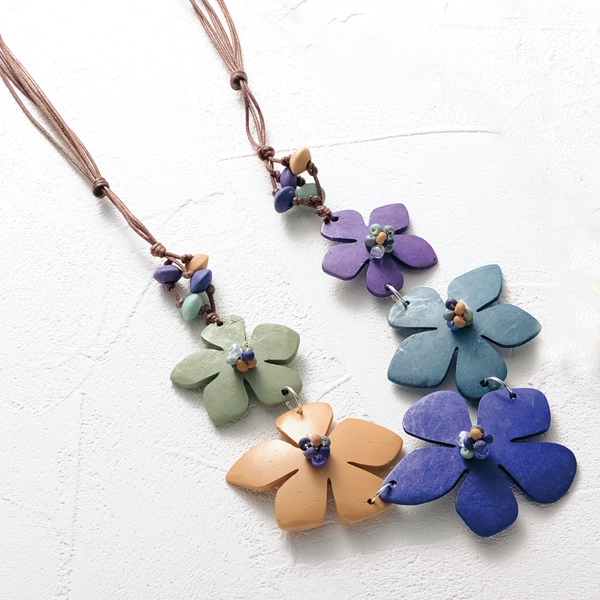 楽天市場 手作り ウッド 木製 ネックレス レディース 天然木 木 長さ調節可能 軽い 軽量 可愛い 大人可愛い アクセサリー 花 フラワーナチュラル ナチュラルファッション 女性 30代 40代 50代 60代 おしゃれ ハンドメイド イエロー パープル : 古布と染めの創作服 駿河屋。