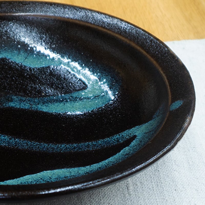 和食器 龍門司焼 大皿 21cm 黒釉青流うつわの店 クラフトなかつか。