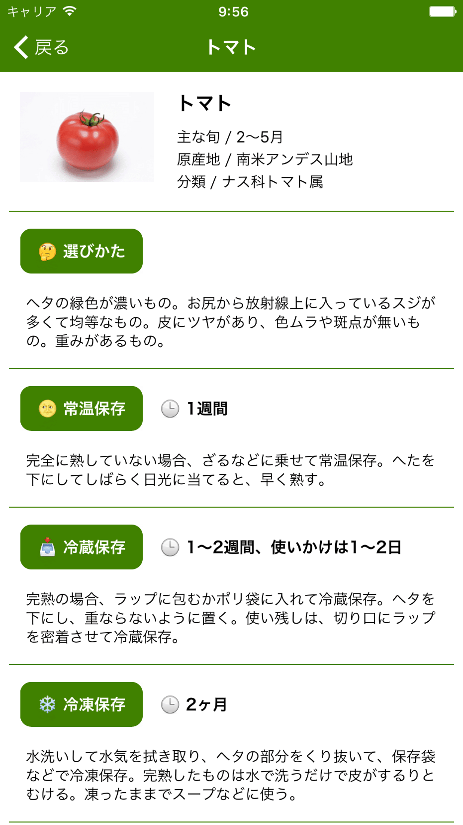 野菜のベストな保存方法や選び方を簡単に調べられるアプリ『Yasai野菜の保存方法・選び方・賞味期限・レシピを簡単チェック!』iPhone研究室。