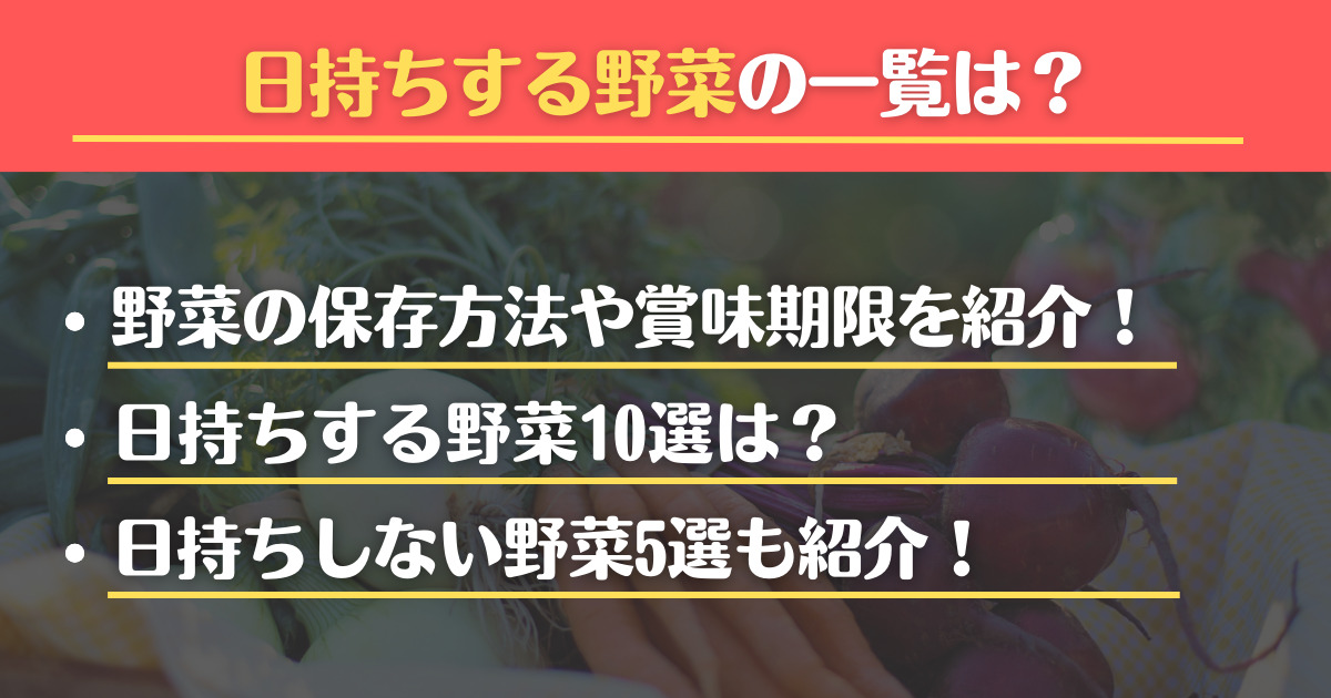 日持ちする野菜の一覧まとめ 長持ちさせる保存方法や賞味期限についても解説。